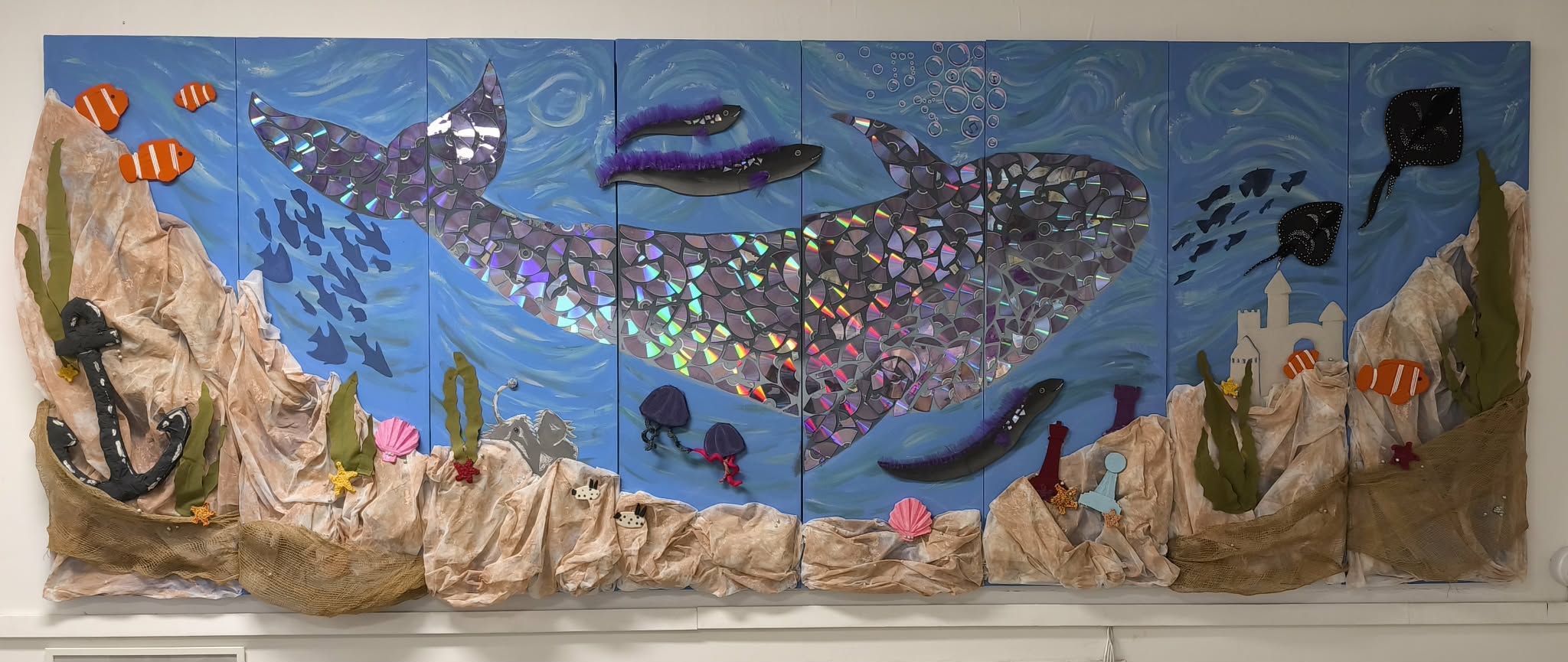 A „Bálnás” faldekoráció a Kozma Lajos Faipari és Kreatív Technikum 13.c dekoratőr osztályának 2. csoportja és az ÚJKK együttműködésében valósult meg 2025 szeptemberének végétől 2026 februárjának elejéig.